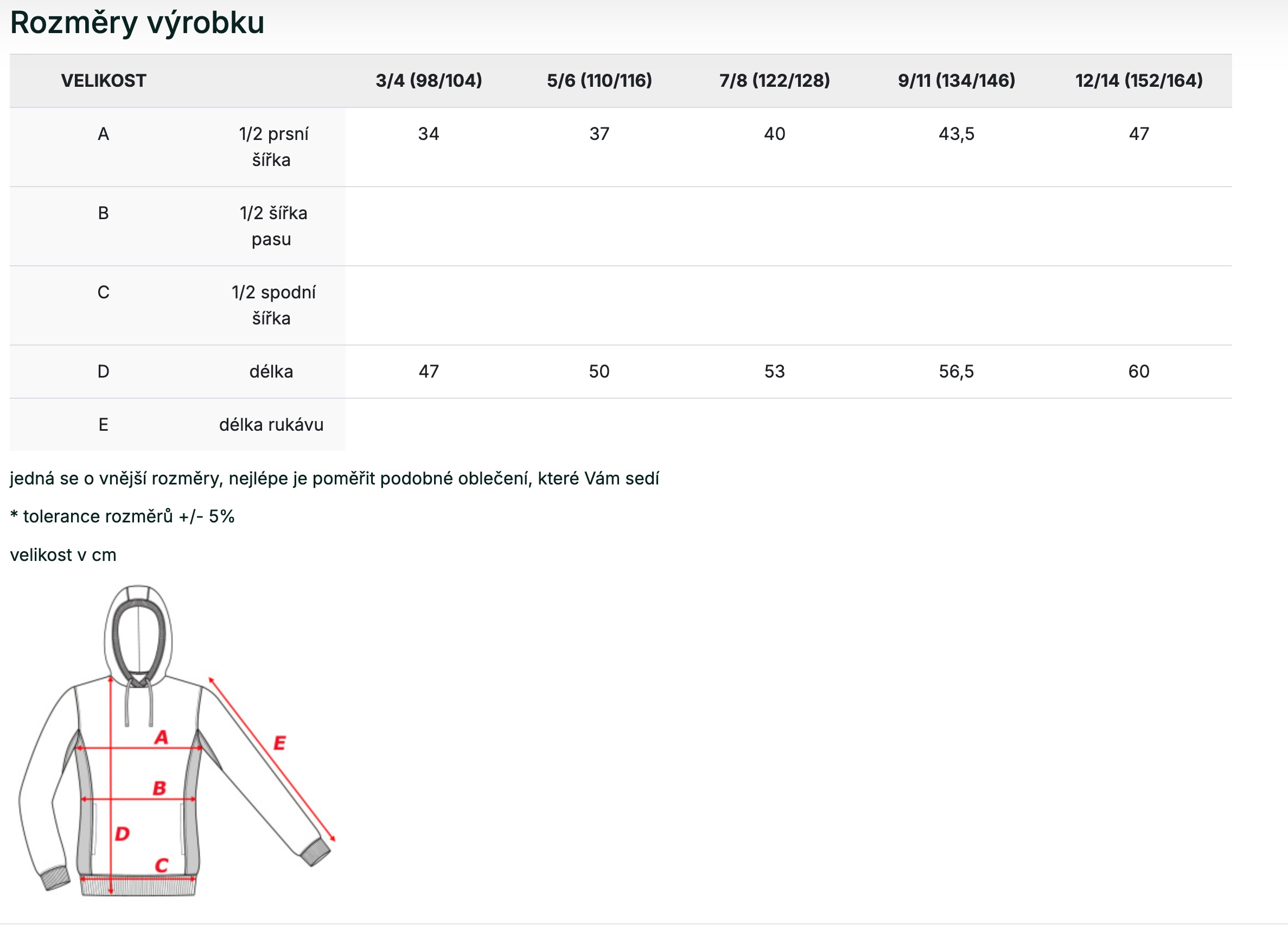 TABULKA VELIKOSTÍ DĚTSKÉ ZDE