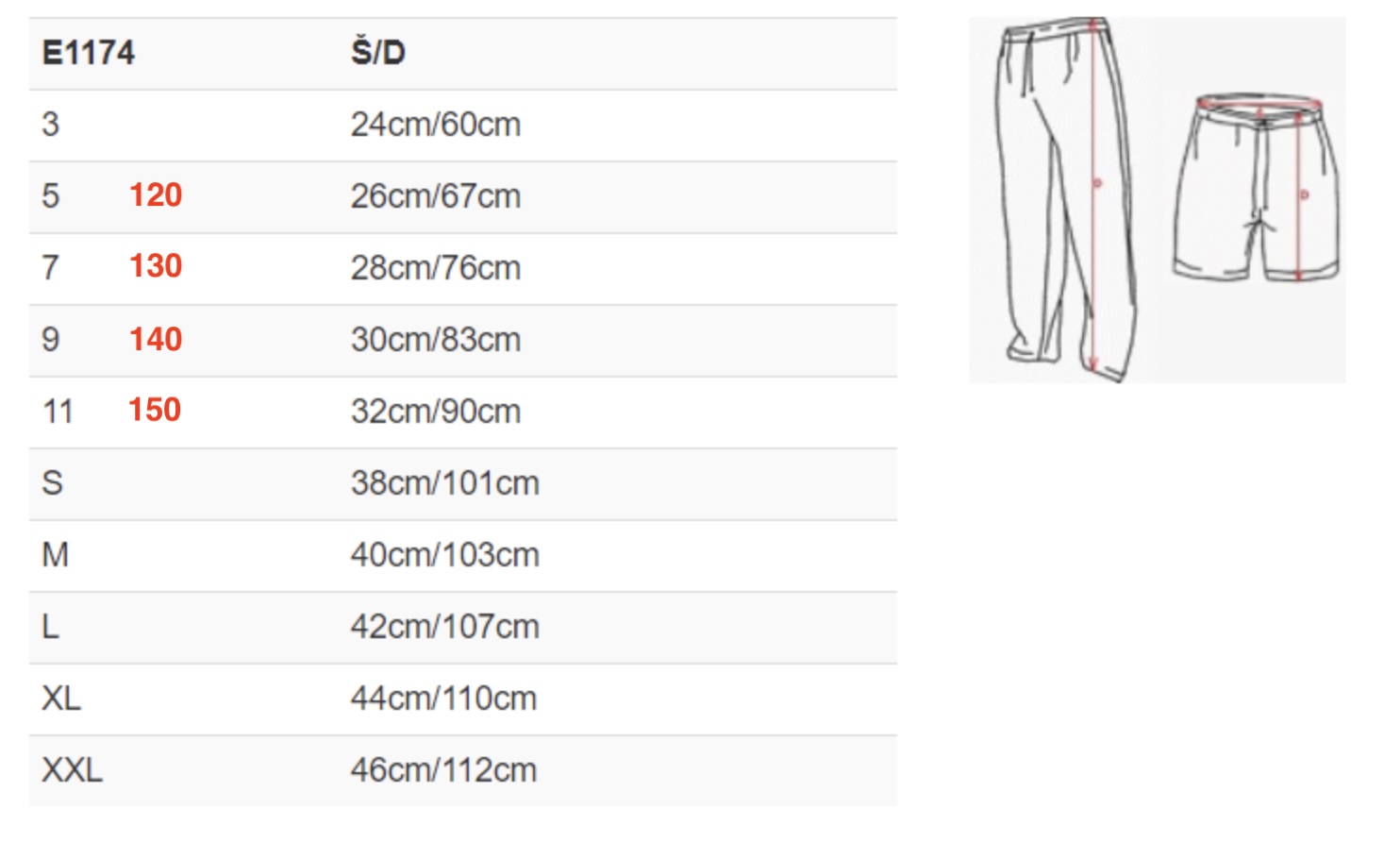 120, 130, 140, 150, S, M, L, XL, XXL