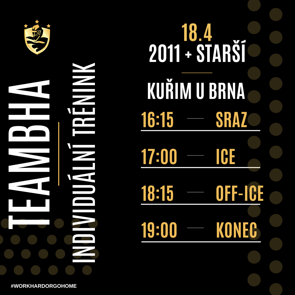 Program INDIVIDUÁLNÍ TRÉNINK 2011 a starší 18.4.2026 / 16:15 SRAZ / Kuřim u Brna
