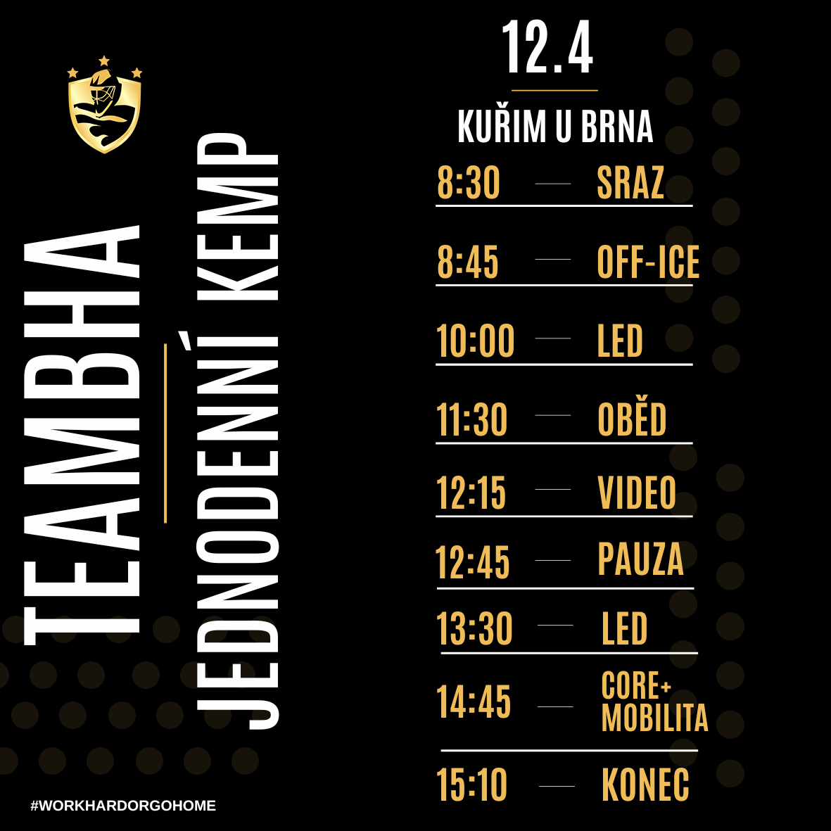 Program JEDNODENNÍ KEMP 12.4.2026 / SRAZ 8:30 / Kuřim u Brna